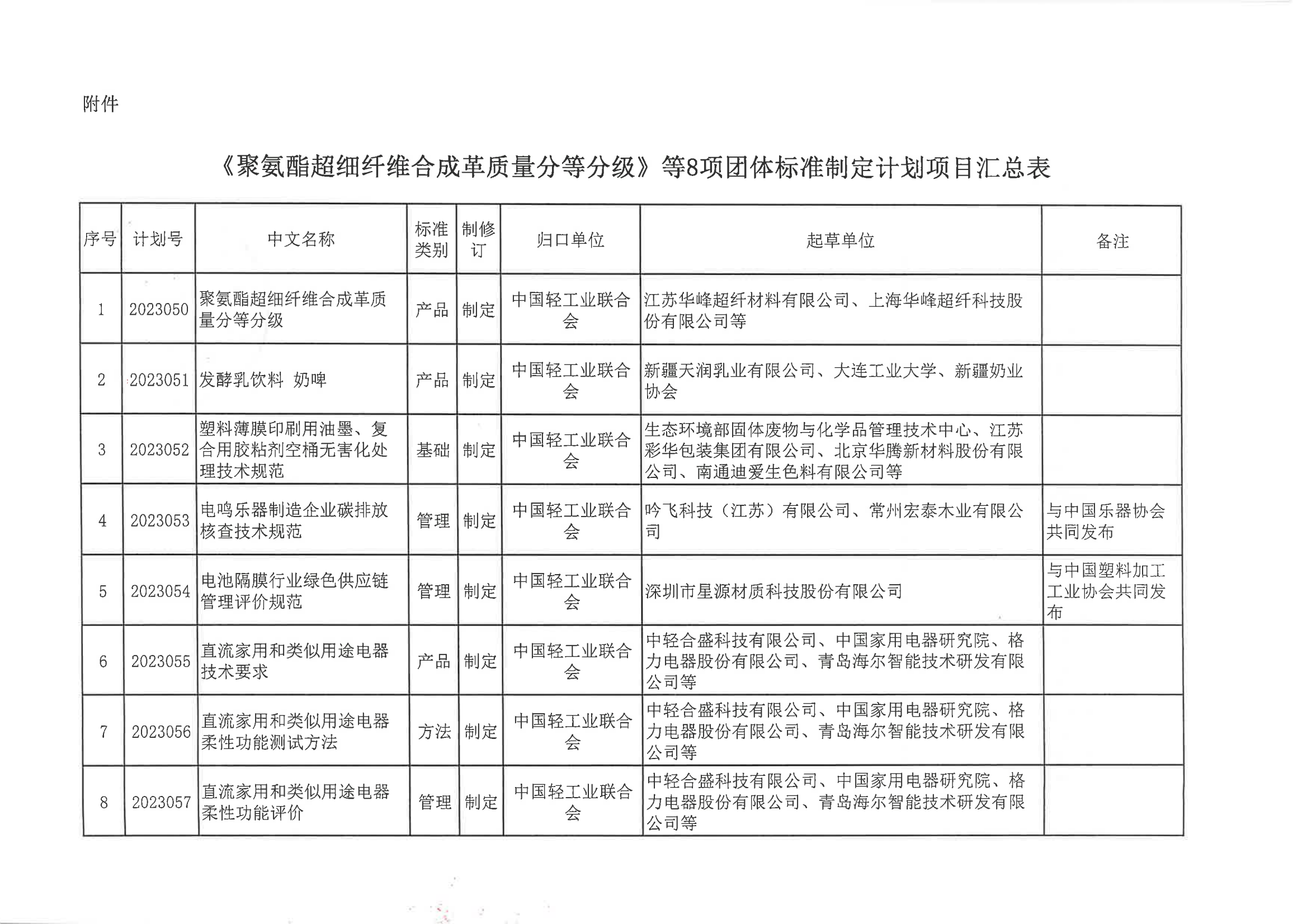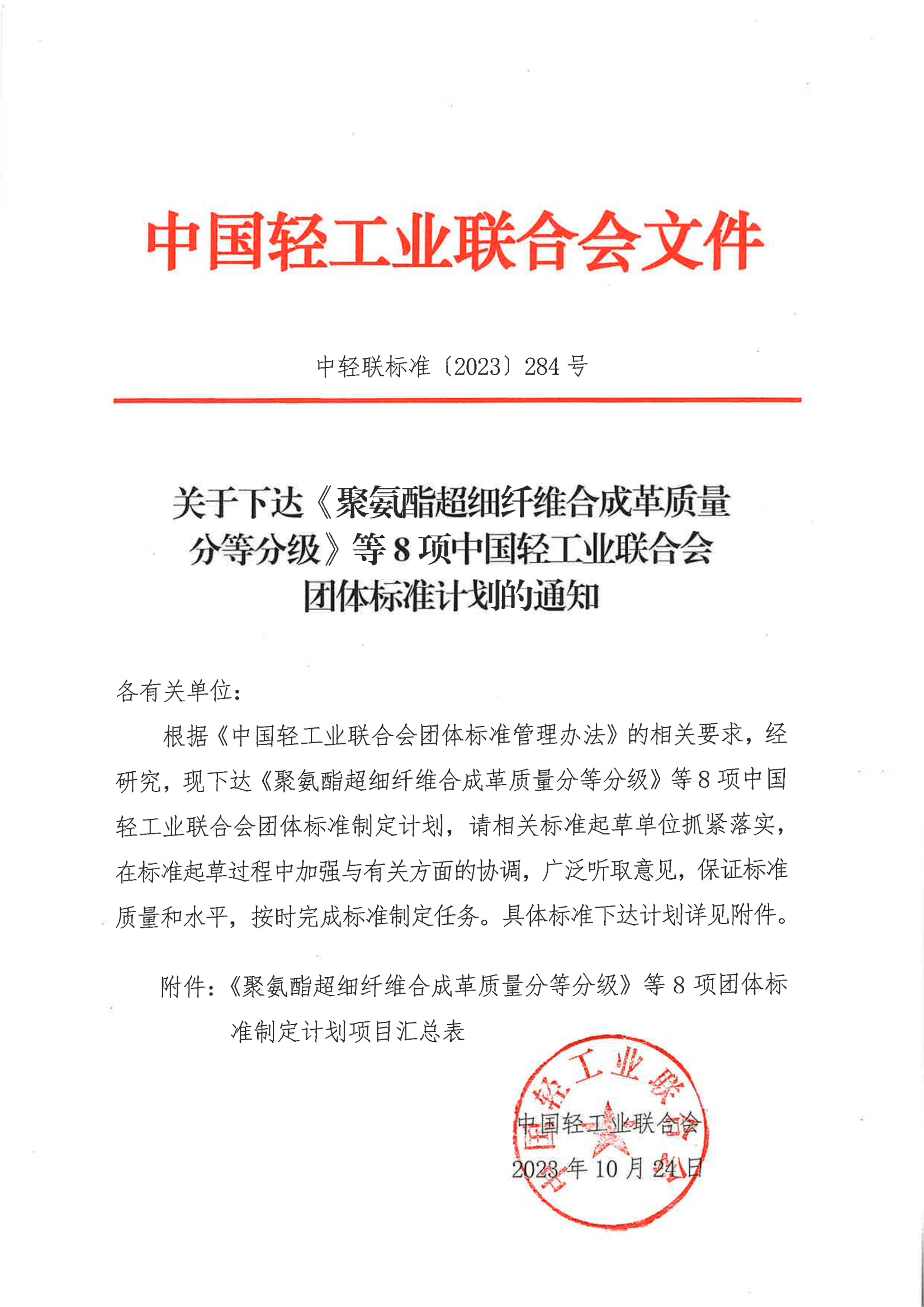 关于下达《聚氨酯超细纤维合成革质量分等分级》等8项神马影院业联合会团体标准计划的通知