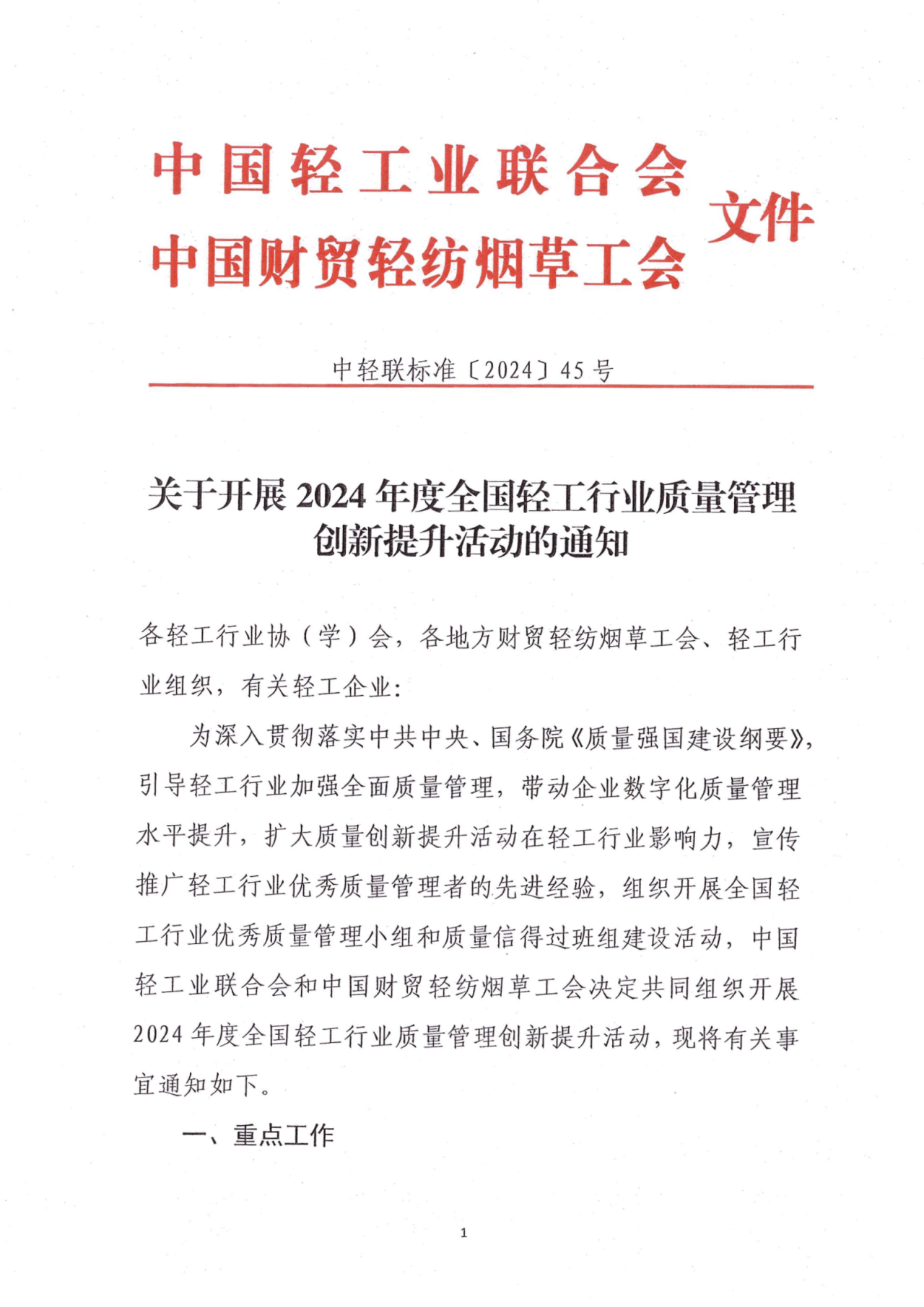 "神马在线" 关于开展2024年度全国轻工行业质量管理创新提升活动的通知