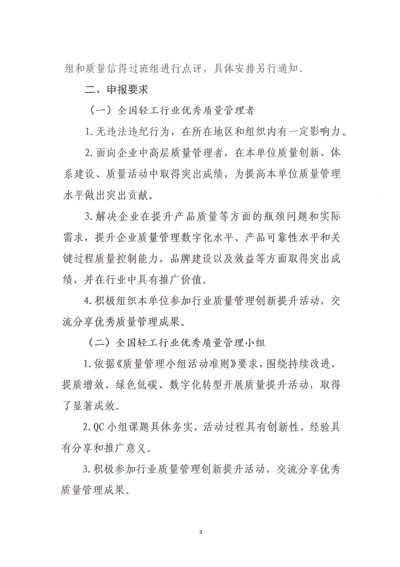 2024年全国轻工行业优秀质量管理者申报材料