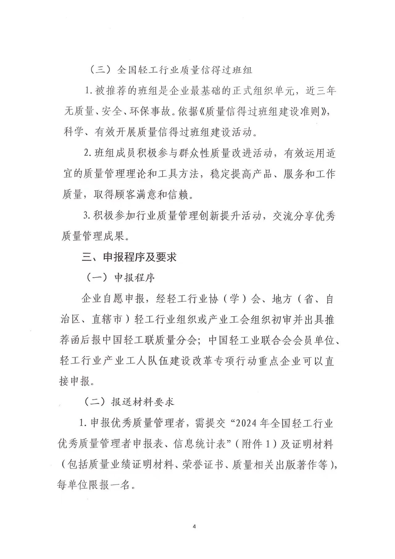 2024年全国轻工行业质量信得过班组申报材料