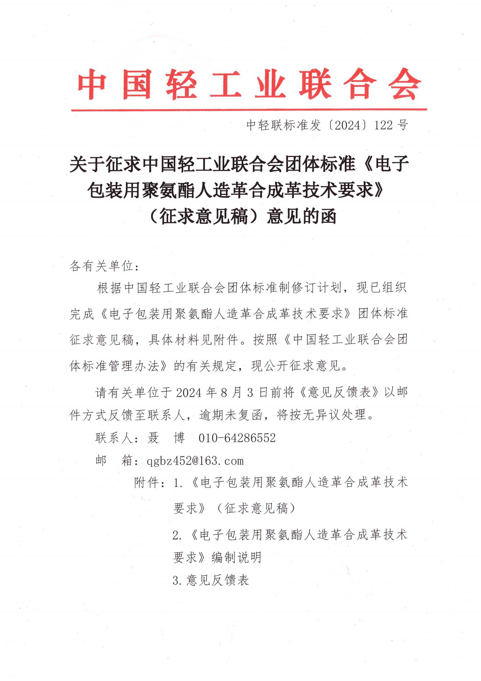 关于征求神马影院业联合会团体标准《电子包装用聚氨酯人造革合成革技术要求》(征求意见稿)意见的函