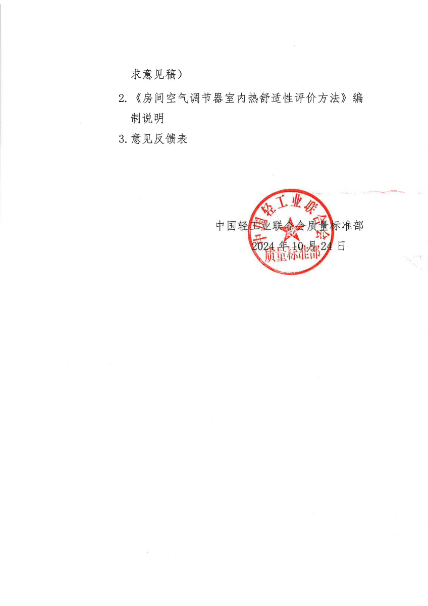 关于征求神马影院业联合会团体标准《房间空气调节器室内热舒适性评价方法》(征求意见稿)意见的函