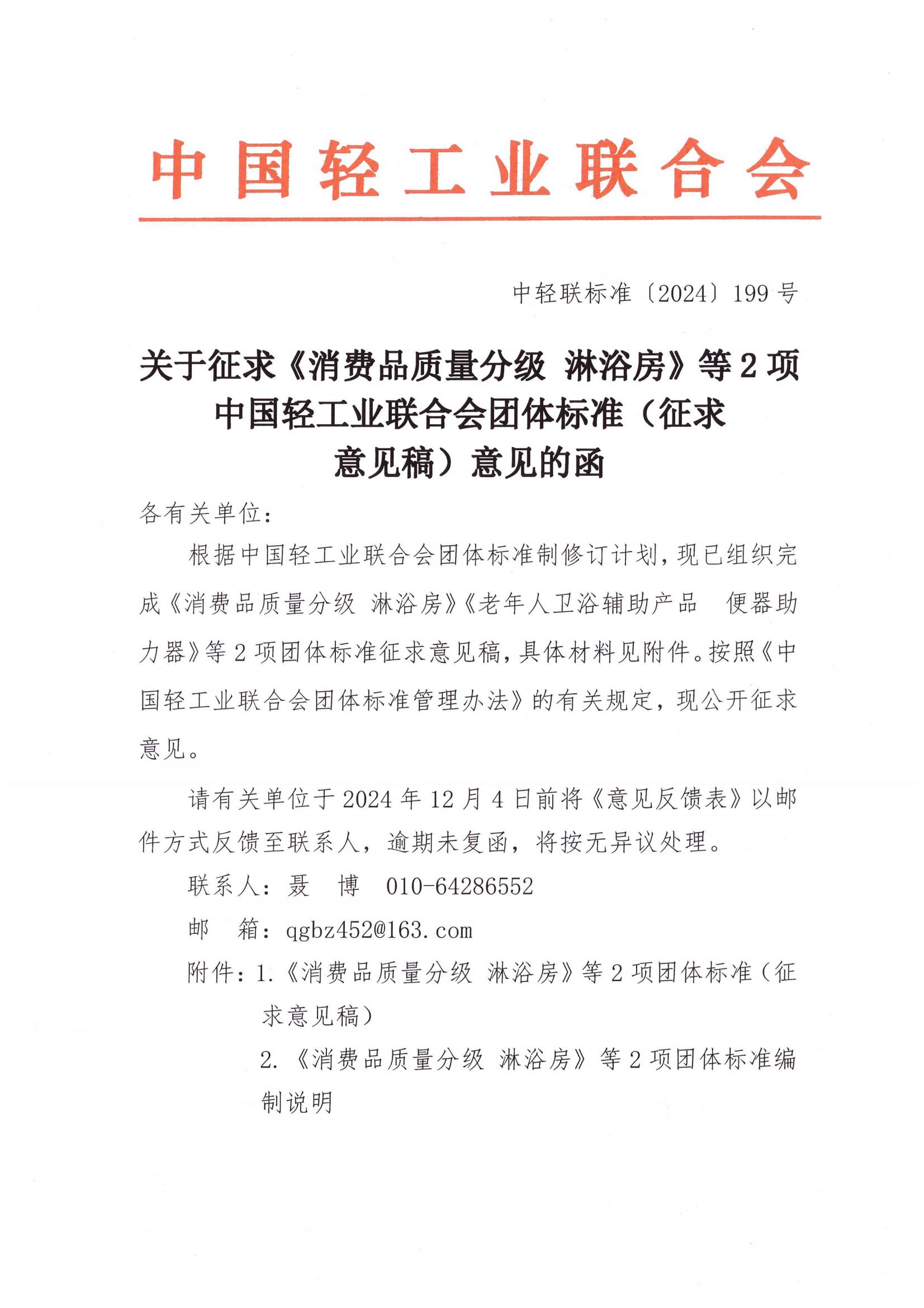 关于征求《消费品质量分级 淋浴房》等2项神马影院业联合会团体标准(征求意见稿)意见的函