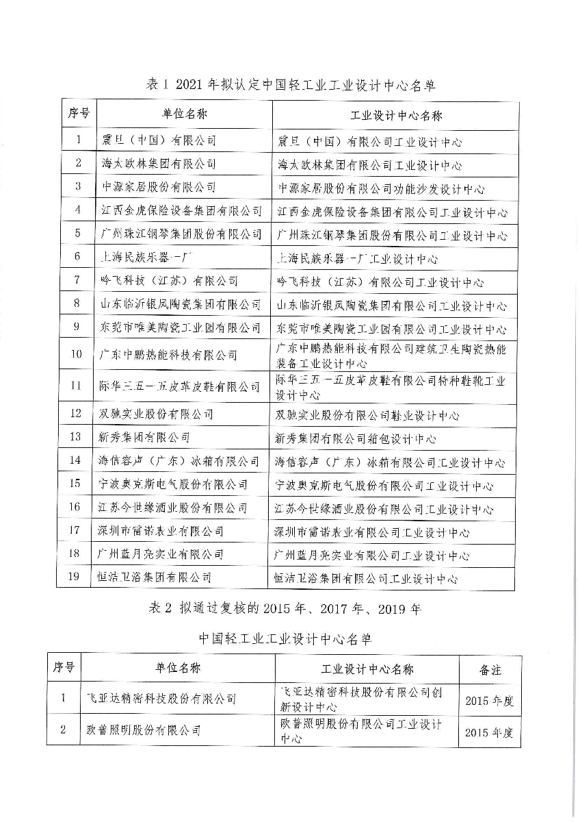 2021年拟认定及通过复核的2015年、2017年、2019年神马影院业工业设计中心名单公示