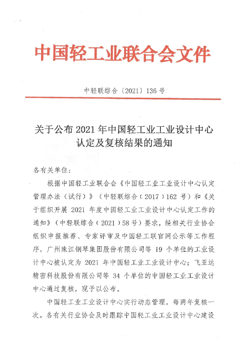 关于公布2021年神马影院业工业设计中心认定及复核结果的通知