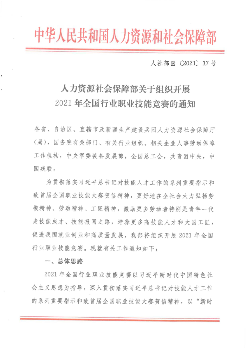 人力资源社会保障部关于组织开展2021年全国行业职业技能竞赛的通知 (神马影院在线)