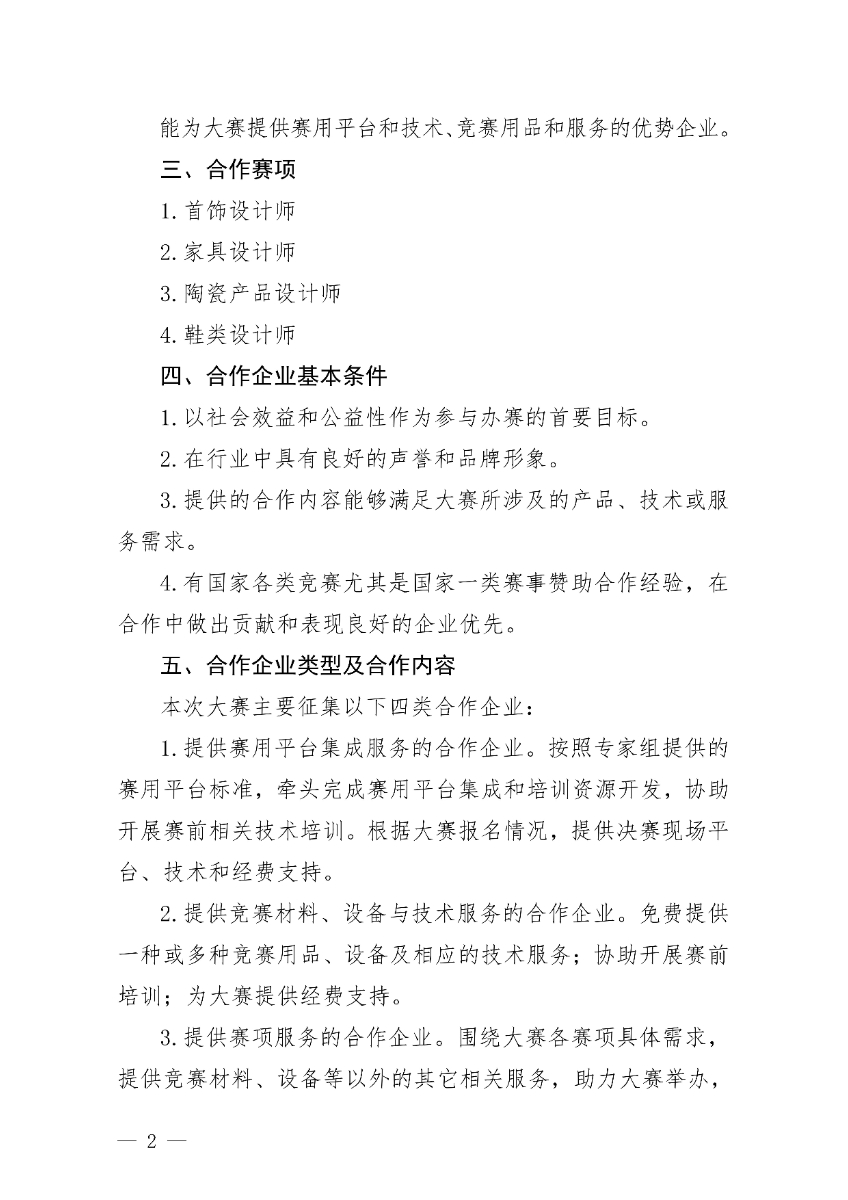 关于开展第三届全国工业设计职业技能大赛合作企业征集工作的通知