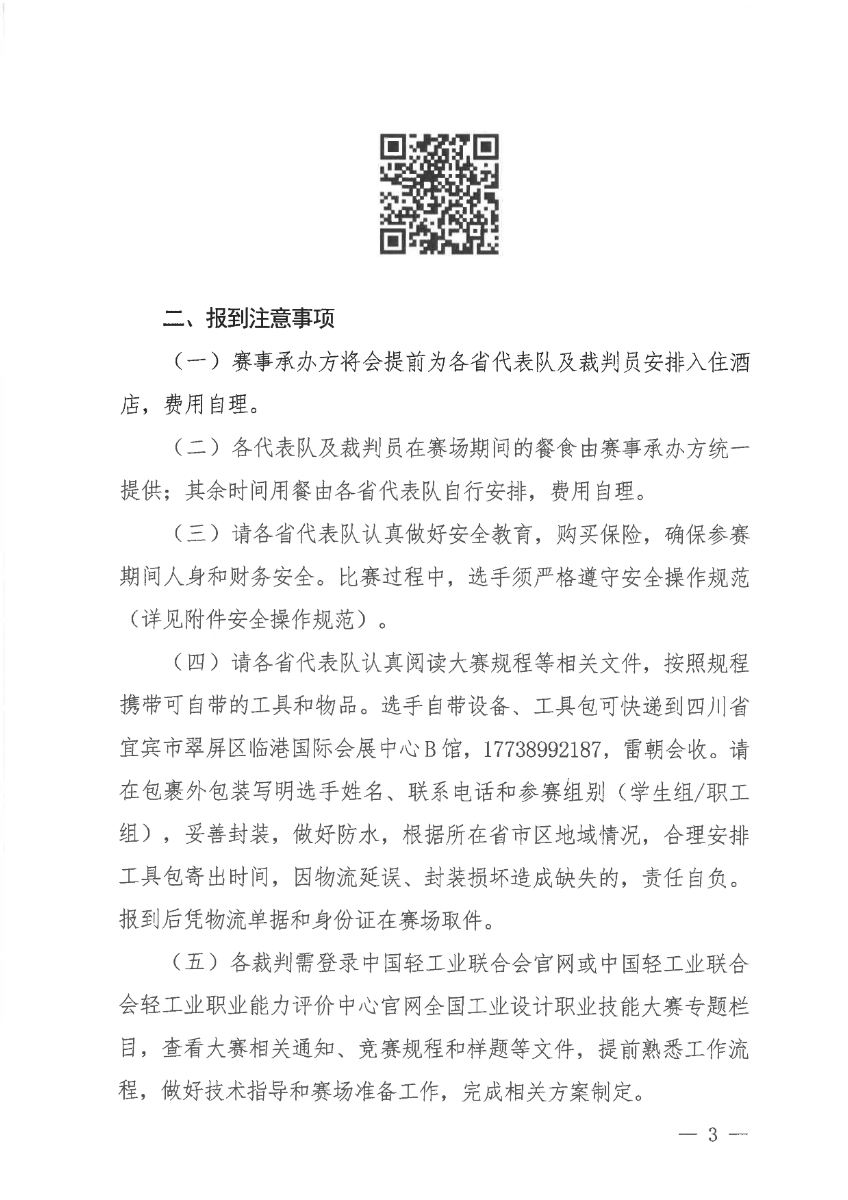 关于第三届全国工业设计职业技能大赛决赛报到有关事项的通知