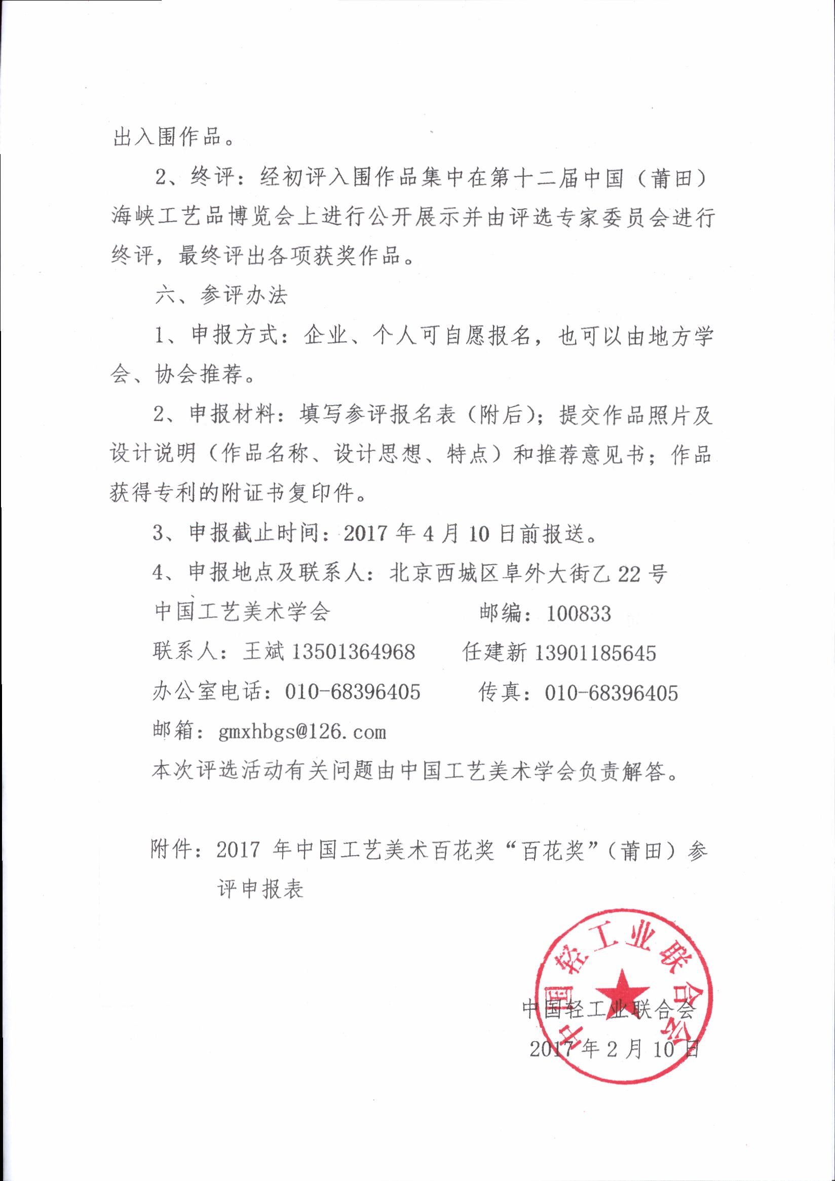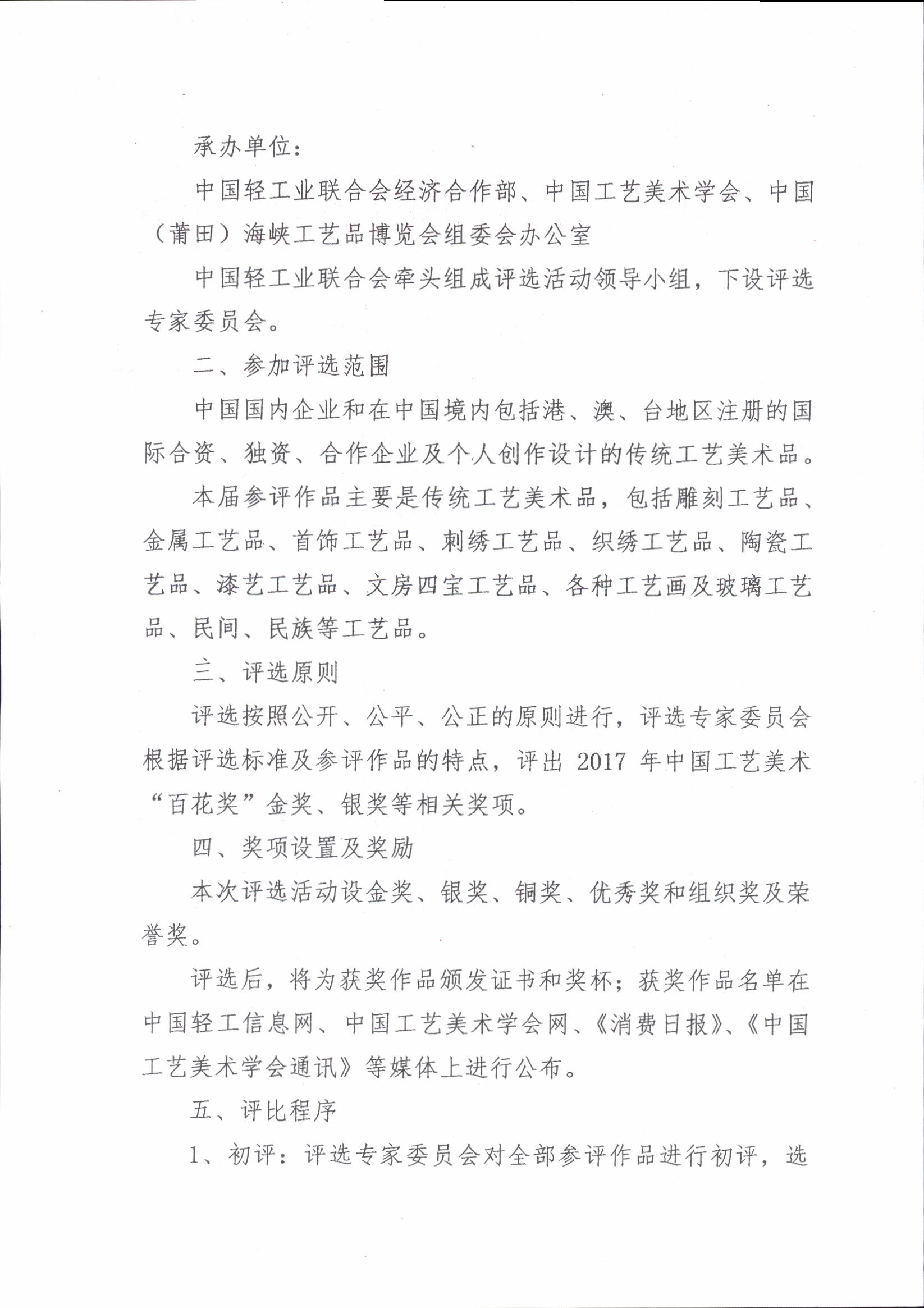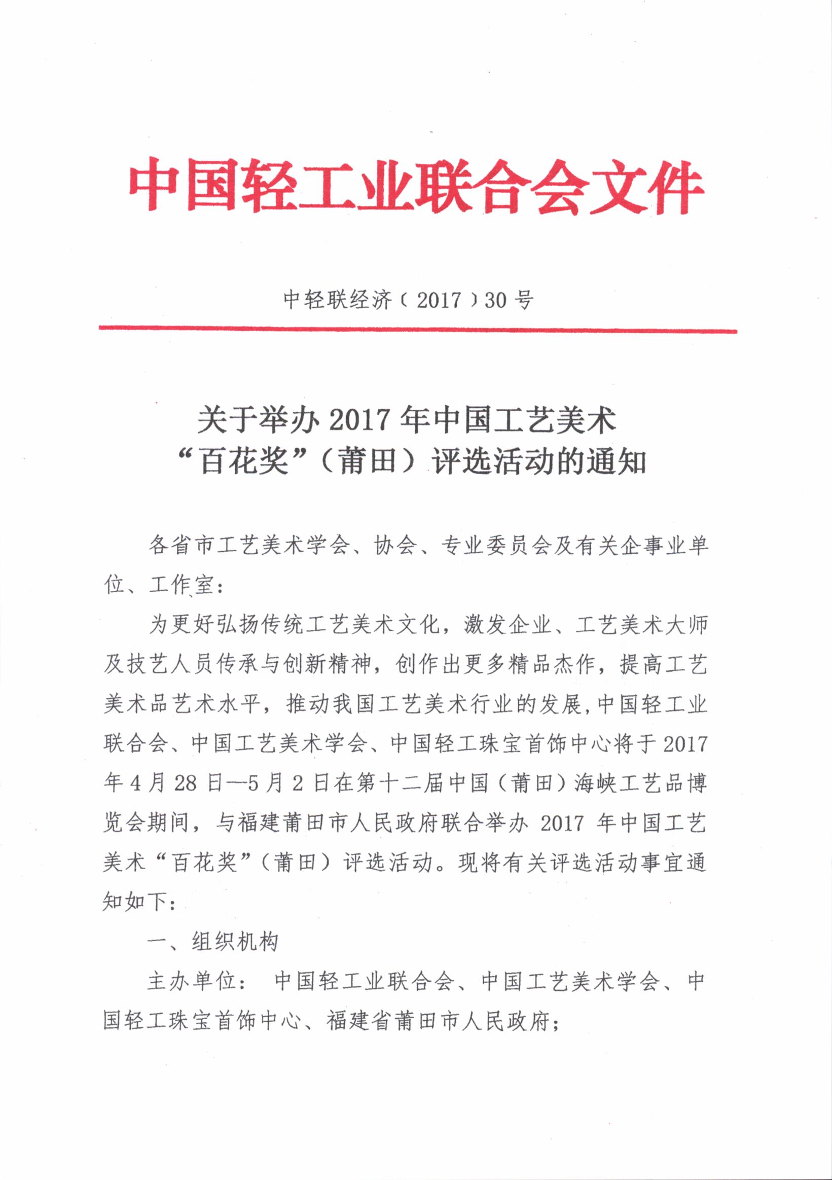 关于举办2017年中国工艺美术“百花奖”(莆田)评选活动的通知