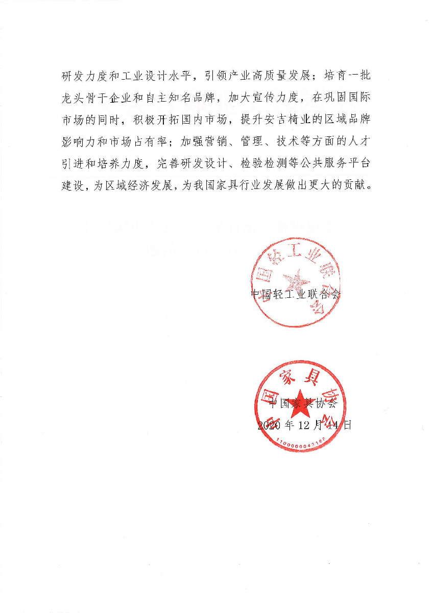 关于继续授予浙江省安吉县“中国椅业之乡·安吉”称号的通知