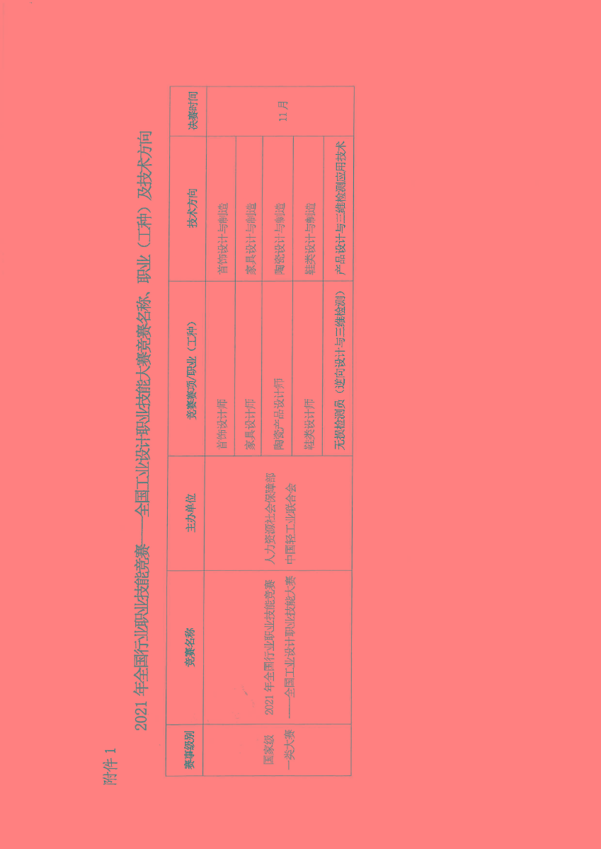 2021年全国行业职业技能竞赛——全国工业设计职业技能大赛竞赛名称、职业(工种)及技术方向
