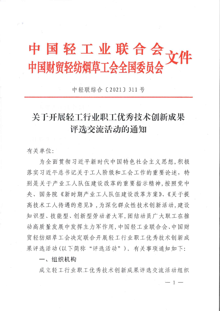关于开展轻工行业职工优秀技术创新成果评选交流活动的通知 (神马在线)