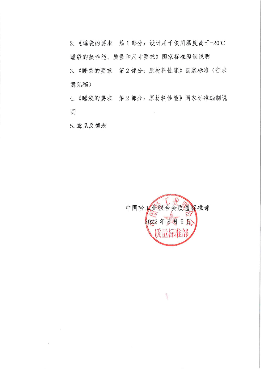 | 3、 | 《睡袋的要求 第2部分:原材料性能》国家标准(征求意见稿) |