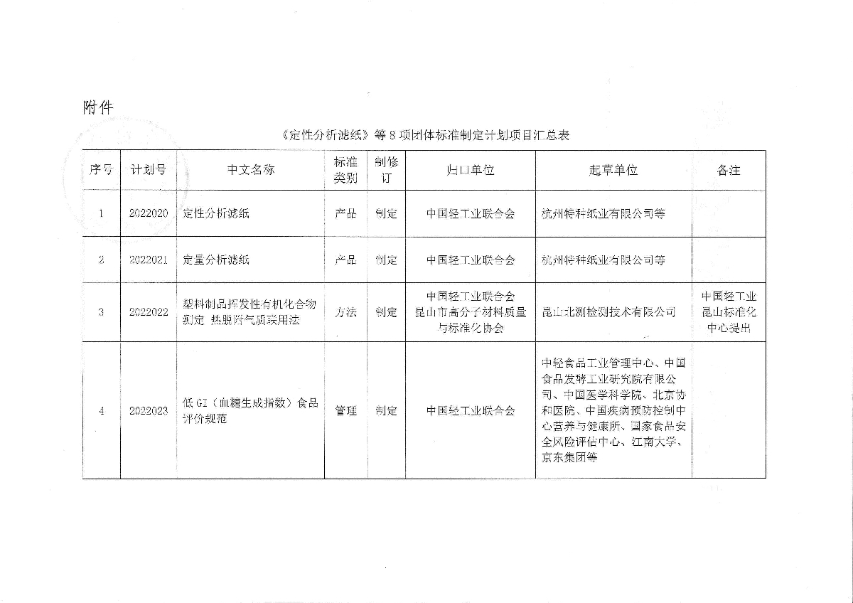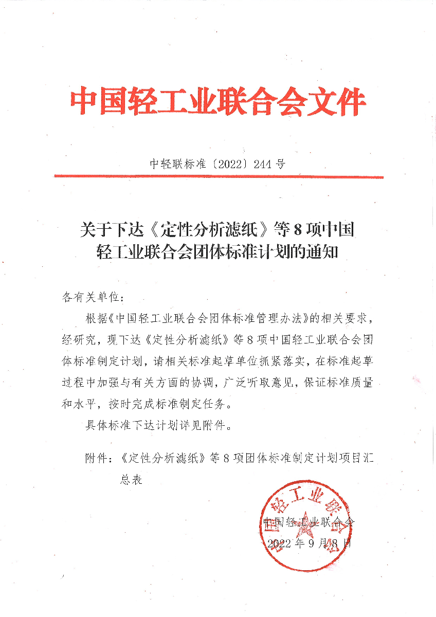 关于下达《定性分析滤纸》等8项神马影院业联合会团体标准计划的通知