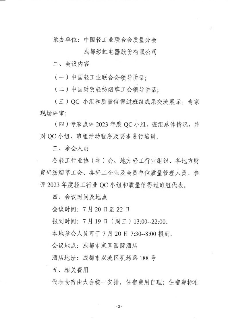 关于召开2023年度全国轻工行业质量管理创新提升活动成果交流会的通知