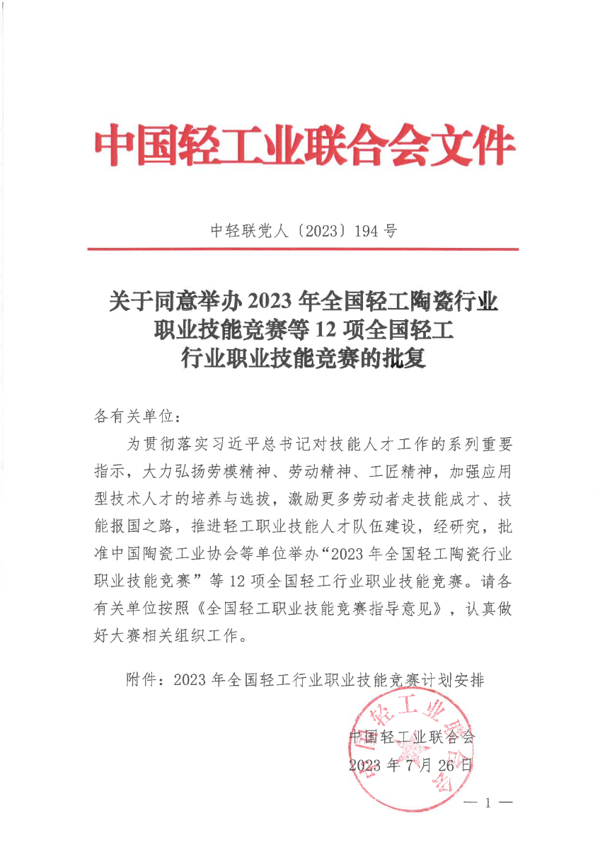 关于同意举办2023年全国轻工行业职业技能竞赛的批复. pdf