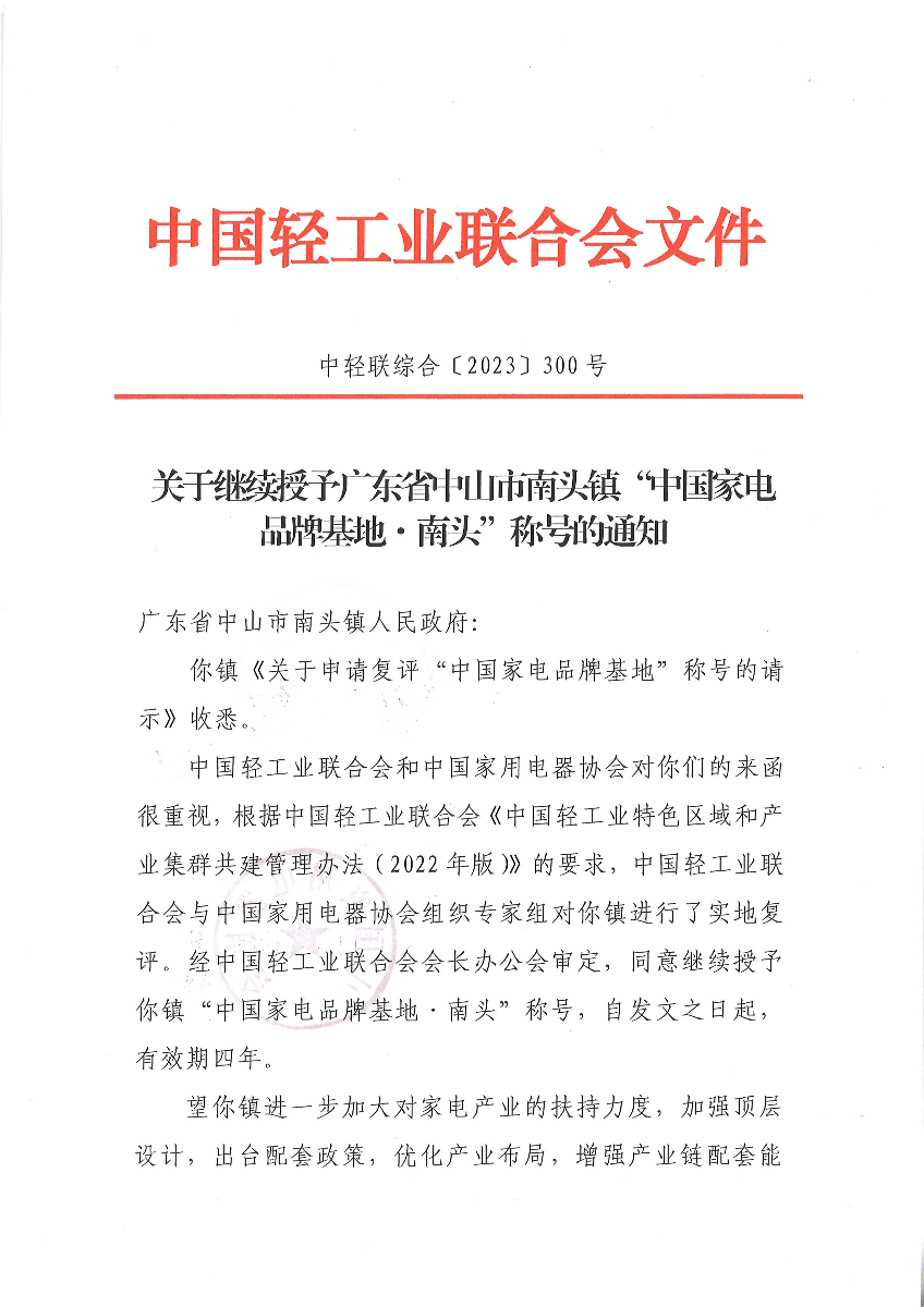 关于继续授予广东省中山市南头镇“中国家电品牌基地·南头”称号的通知 (神马影院高清)